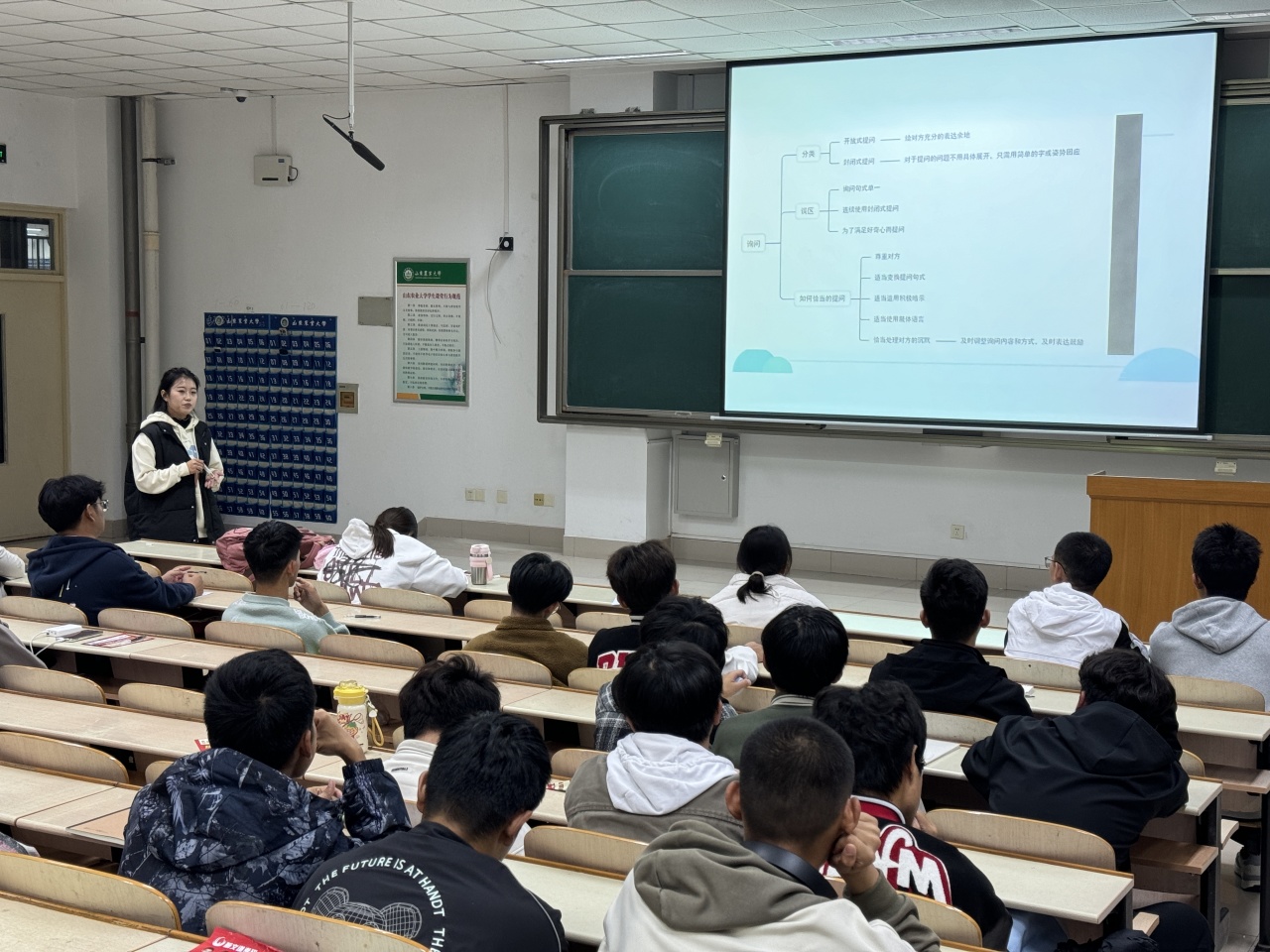 第一环节:对心理委员职责介绍。在讲解后,同学们逐渐了解心理委员的职责和作用,通过现场提问等互动方式营造出了轻松活跃的氛围,使得同学们能够更加积极主动地参与到后续环节之中,为整个培训活动的顺利开展奠定了良好的基础。