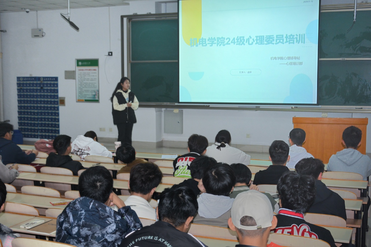 为深入了解心理委员的工作职责,机电学院于11月12日晚上19:00在泮河校区开展心理委员培训活动。通过本次培训,24 级心理委员学习了如何运用相关知识与技能去帮助同学们解决问题,从而达到提升班级整体心理健康水平、营造良好心理氛围的目的。