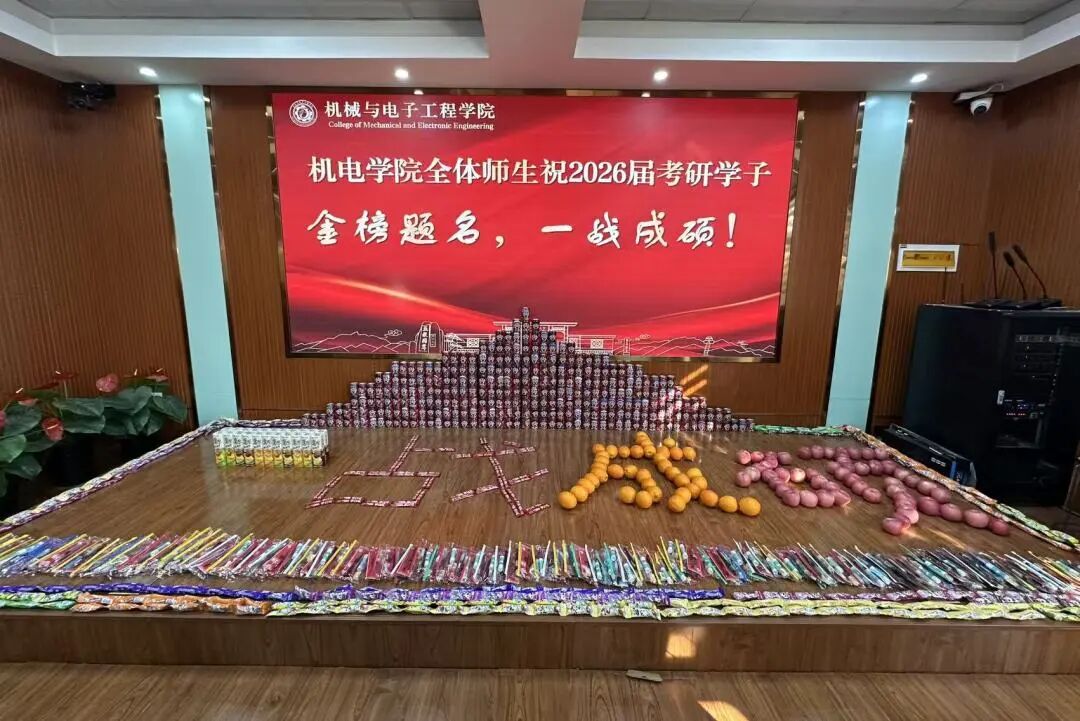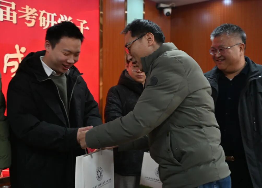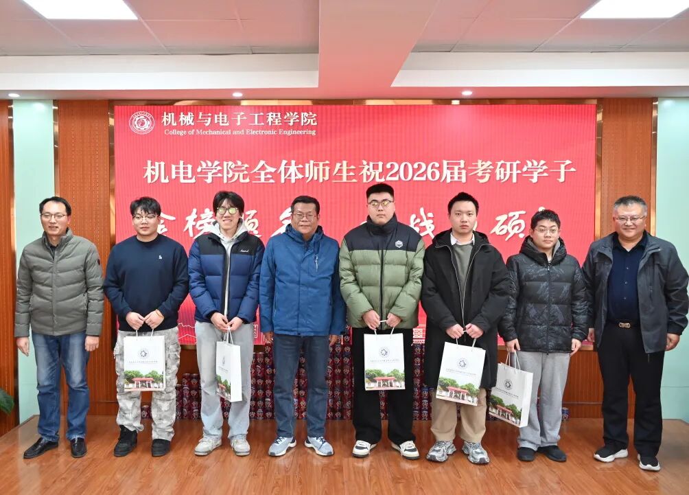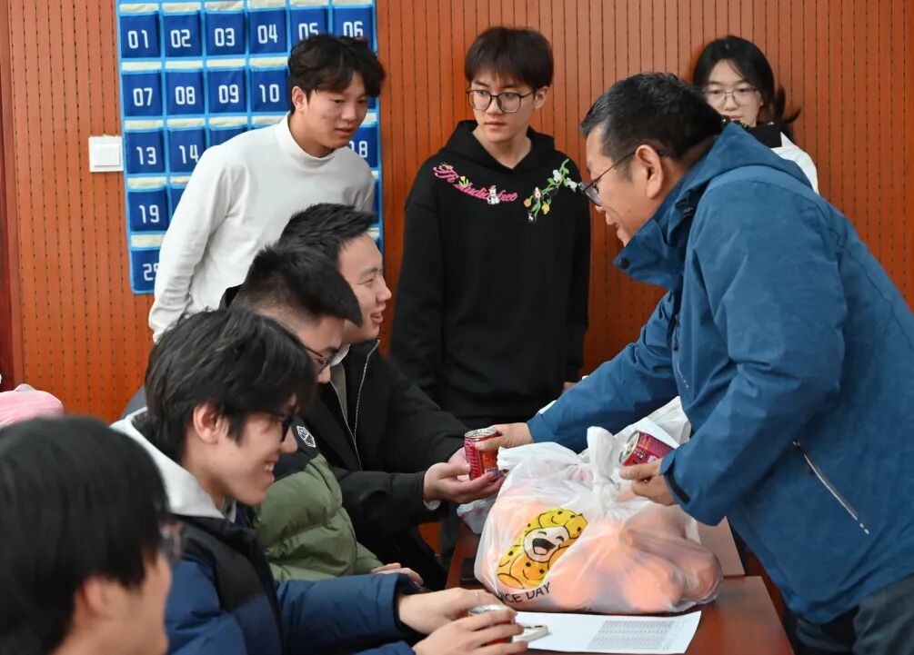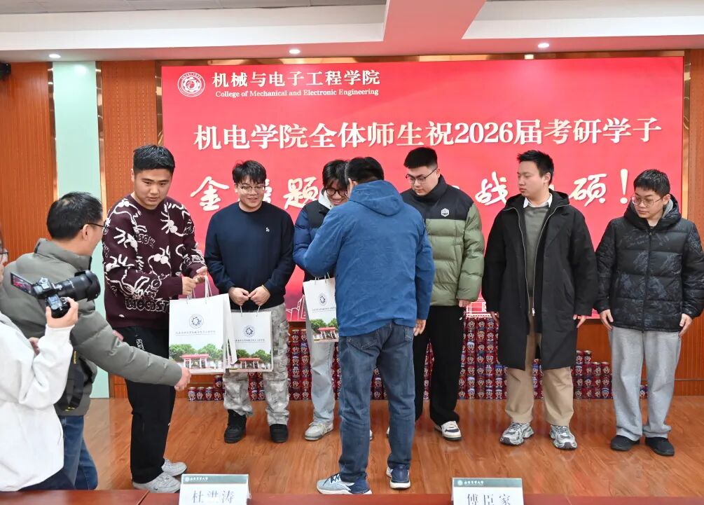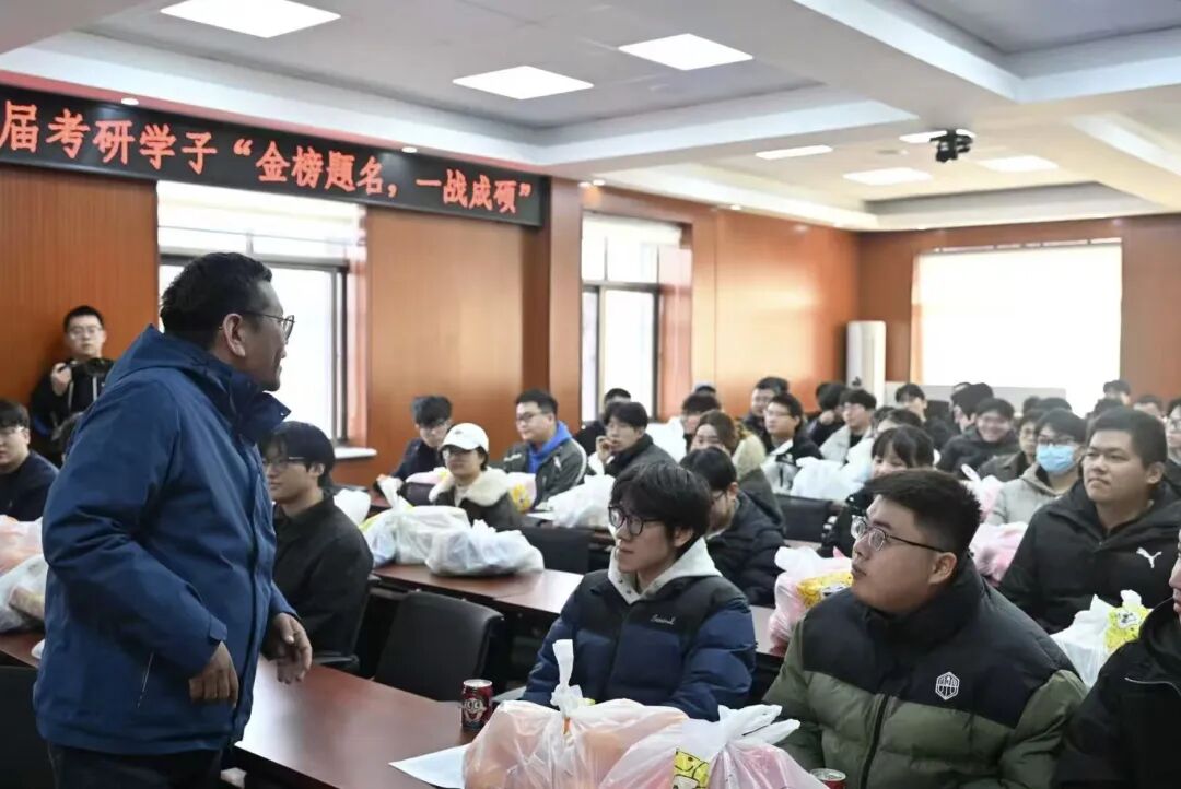 为进一步增强2026届考研学子应考信心,提振复习冲刺阶段的士气与决心,12月9日机电学院党委书记傅臣家、党委副书记杜洪涛、副院长宋月鹏及全体辅导员为考研学子发放专属“考研大礼包”,并送上温暖祝福。