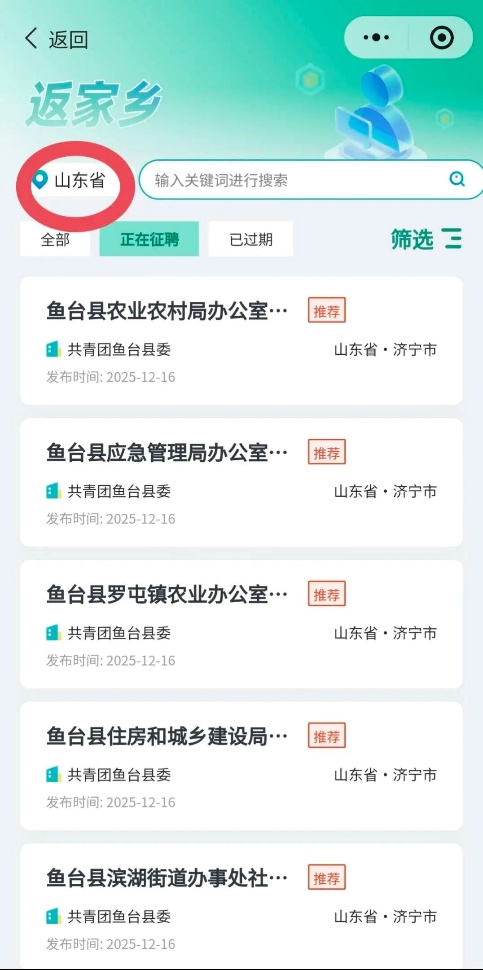 微信【“青鸟计划”小程序】→选择首页的【返家乡】→筛选【地区】→选择合适岗位,进行【投递简历】→【我的岗位】查看投递状况。