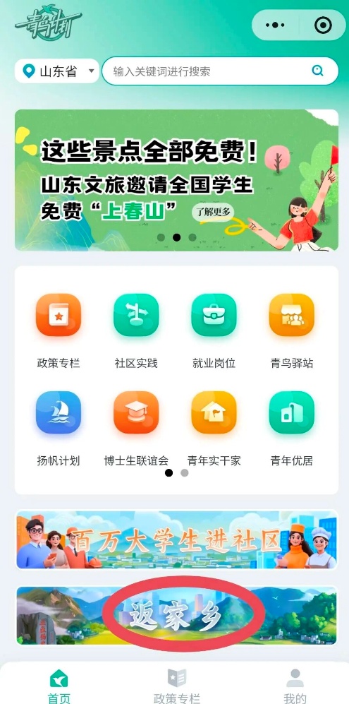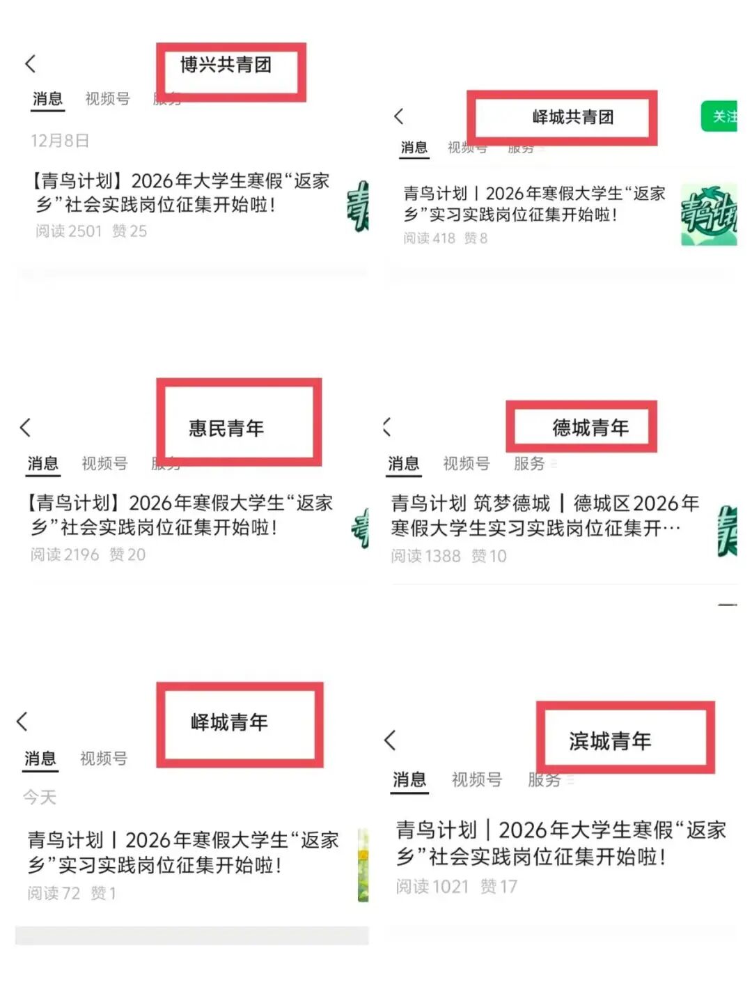 部分地区会通过团委公众号发布“返家乡”“三下乡”“青鸟计划”系列推文,介绍活动内容及要求,公布实习实践岗位。可以通过关注地方团委公众号,在规定时间按照要求报名参与寒暑期青鸟计划实习实践活动。